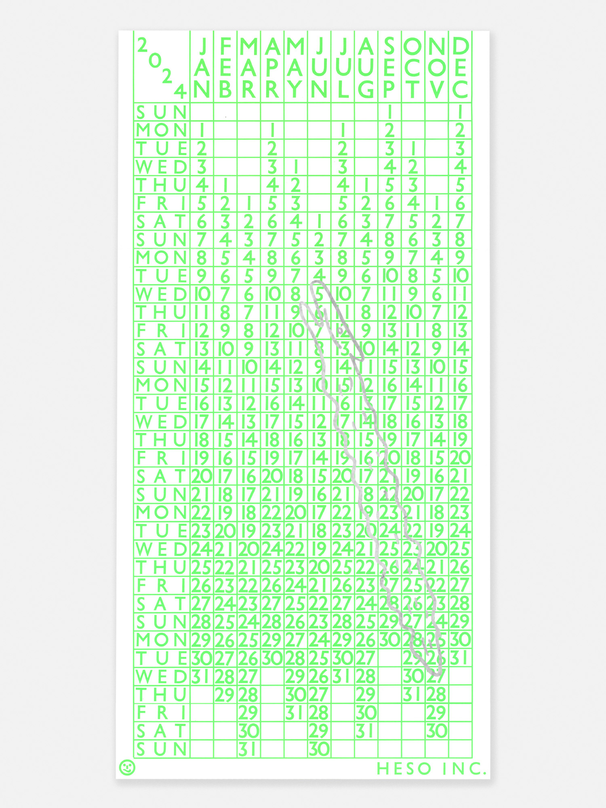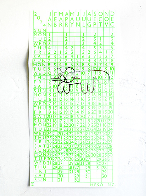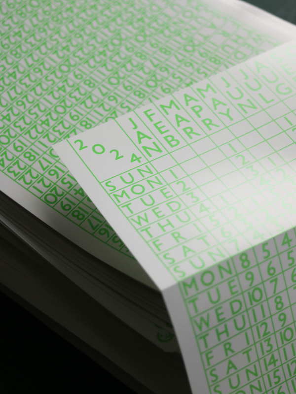 蛍光グリーンが印象的な2024年カレンダー。